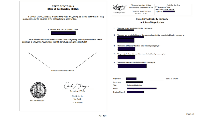 Formamos tu empresa en los Estados Unidos de América. El servicio incluye lo siguiente: 1. Formación de una LLC (de un sólo miembro o multi miembro) en el estado de Wyoming. 2. Cuota Estatal de...